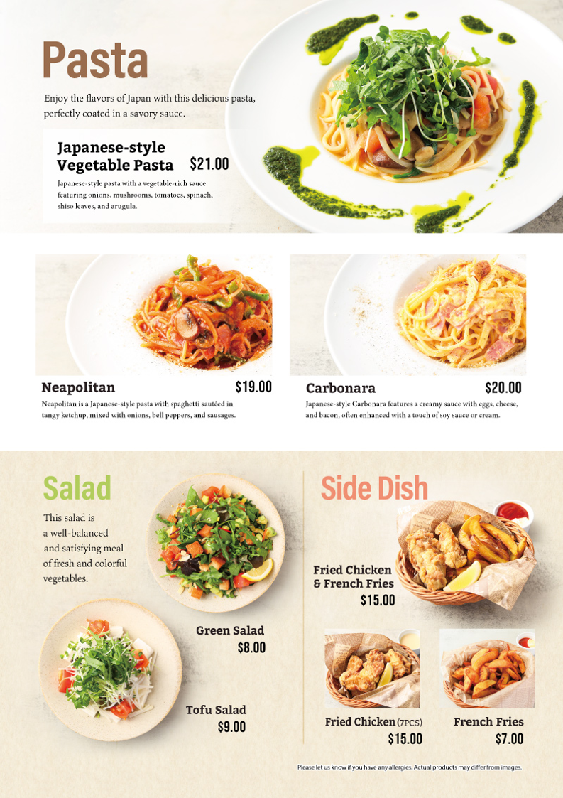 Welcome to TAKAGI COFFEE WEST THIRD, a delightful venue nestled in Los Angeles, celebrated for its fusion of Japanese-inspired comfort food and exceptional coffee. The menu is a culinary journey that promises a unique experience for every palate. Start your meal with the Japanesestyle Vegetable Pasta, a vibrant dish brimming with fresh vegetables and rich flavors at just US$21.00. Not to be missed, the Fluffy Pancakes, praised for their incredible texture, evoke nostalgia for Asian cuisine. Pair your meal with a cup of expertly brewed coffee, where the rotating pour-over options showcase a variety of beans. Highlights also include the Fried Chicken and Carbonara Japanesestyle, which come highly recommended by customers for their exceptional taste and quality. With each dish handcrafted with care, TAKAGI COFFEE WEST THIRD stands out as a must-visit for those in search of authentic Japanese flavors and a cozy dining atmosphere.